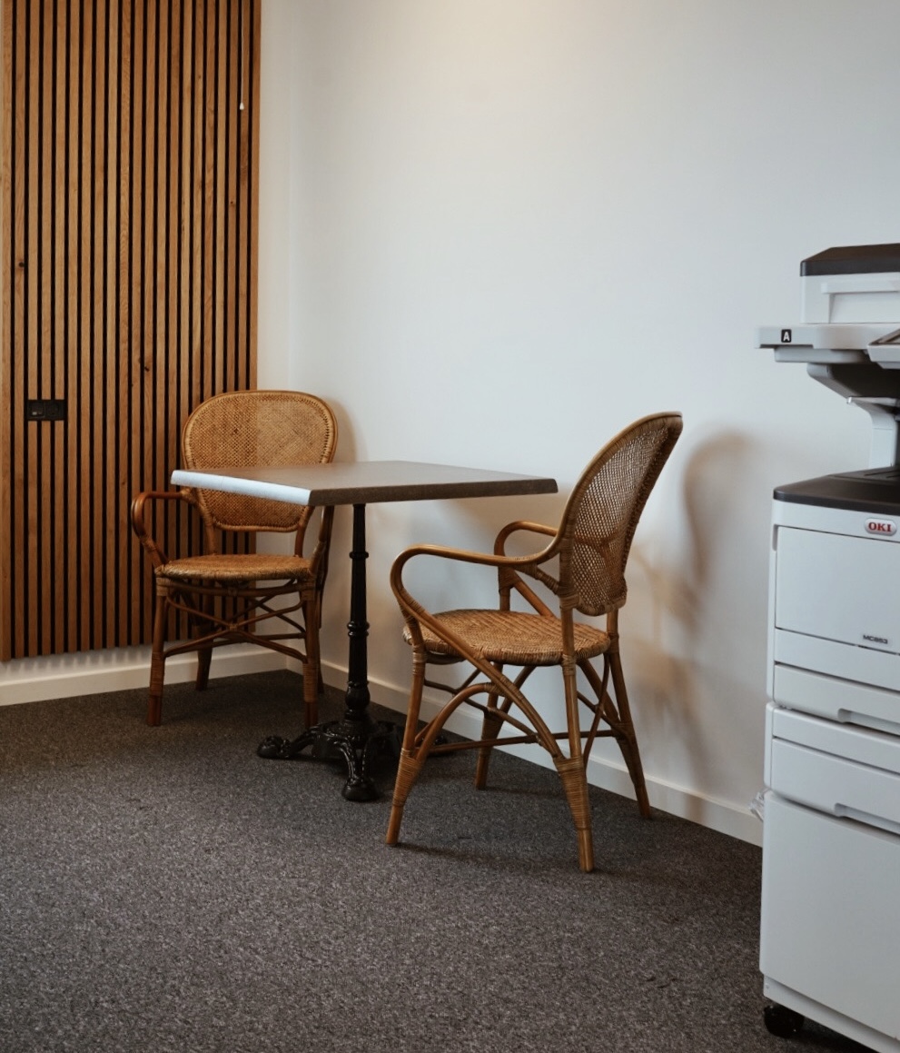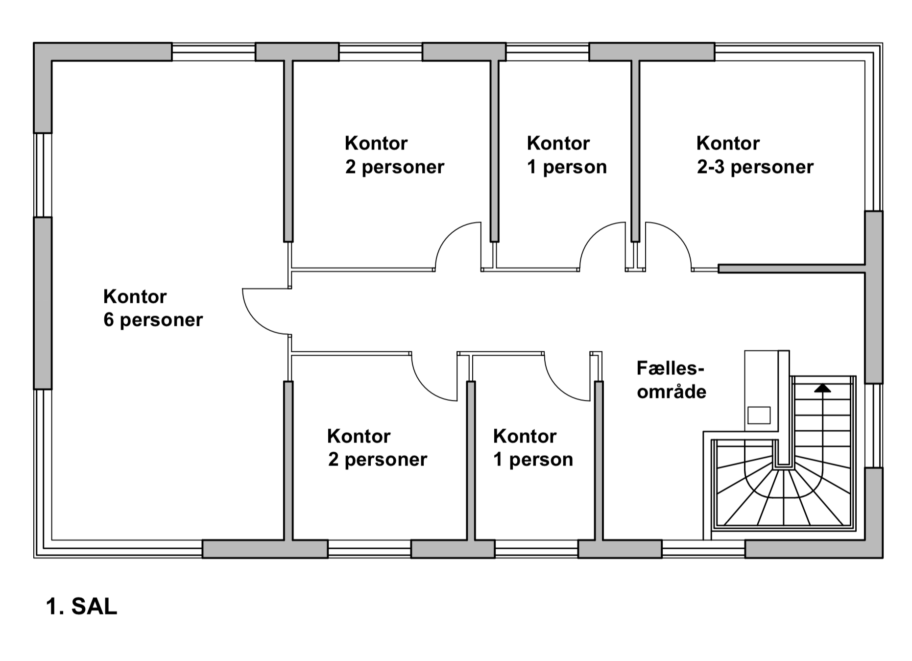 Bygningen er renoveret med lydisolering af kontorer og mødelokale.